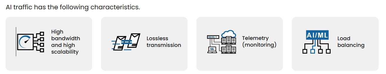 เนื่องจากการส่งสัญญาณโดยไม่มีข้อมูลสูญหาย(Lossless Transmission) นั้นเป็นเรื่องสำคัญ RoCE (RDMA over Converged Ethernet) จึงมีบทบาทสำคัญอย่างมากในเครือข่าย AI โดยทำหน้าที่เป็นควบคุมอัตราการส่งข้อมูลและการจราจร