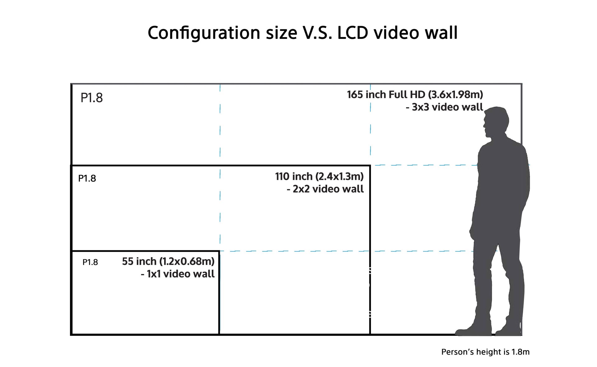 ขนาด dimension เท่ากับจอ 55 นิ้ว สามารถเปลี่ยนแทนจอ LCD TV เดิมได้พอดี และต่อขยายได้ไม่จำกัด
