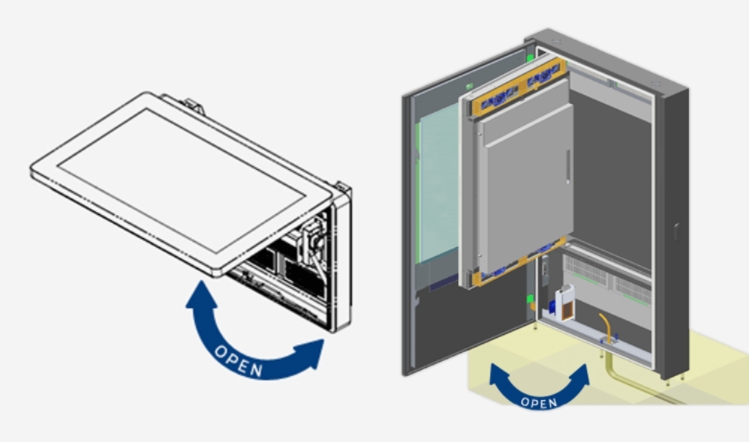 การออกแบบเส้นทางระดับโทรคมนาคมช่วยให้มั่นใจได้ถึงประสิทธิภาพการปิดผนึกของห้องโดยสาร ทางเข้าประตูด้านหน้าพร้อมตัวล็อคสำหรับจอภาพติดผนังและรุ่นคีออสก์เพื่อการใช้งานและบำรุงรักษาที่ง่ายดาย