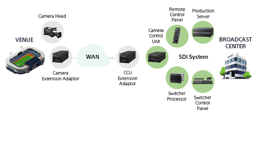 เพลิดเพลินกับสิทธิประโยชน์แรกของ remote production ด้วยการลงทุนเพียงเล็กน้อย ขยายระบบกล้อง SDI ที่มีอยู่ของคุณผ่าน IP ด้วยอะแดปเตอร์ส่วนขยาย IP (HDCE-TX30 และ HDCE-RX30) พร้อม network switch และ PTP grandmaster แทนที่จะเปลี่ยนไปใช้ระบบ IP เต็มรูปแบบ ให้ใช้สิ่งที่มีอยู่เพื่อปรับปรุงการดำเนินงานของคุณโดยไม่เปลืองงบประมาณ